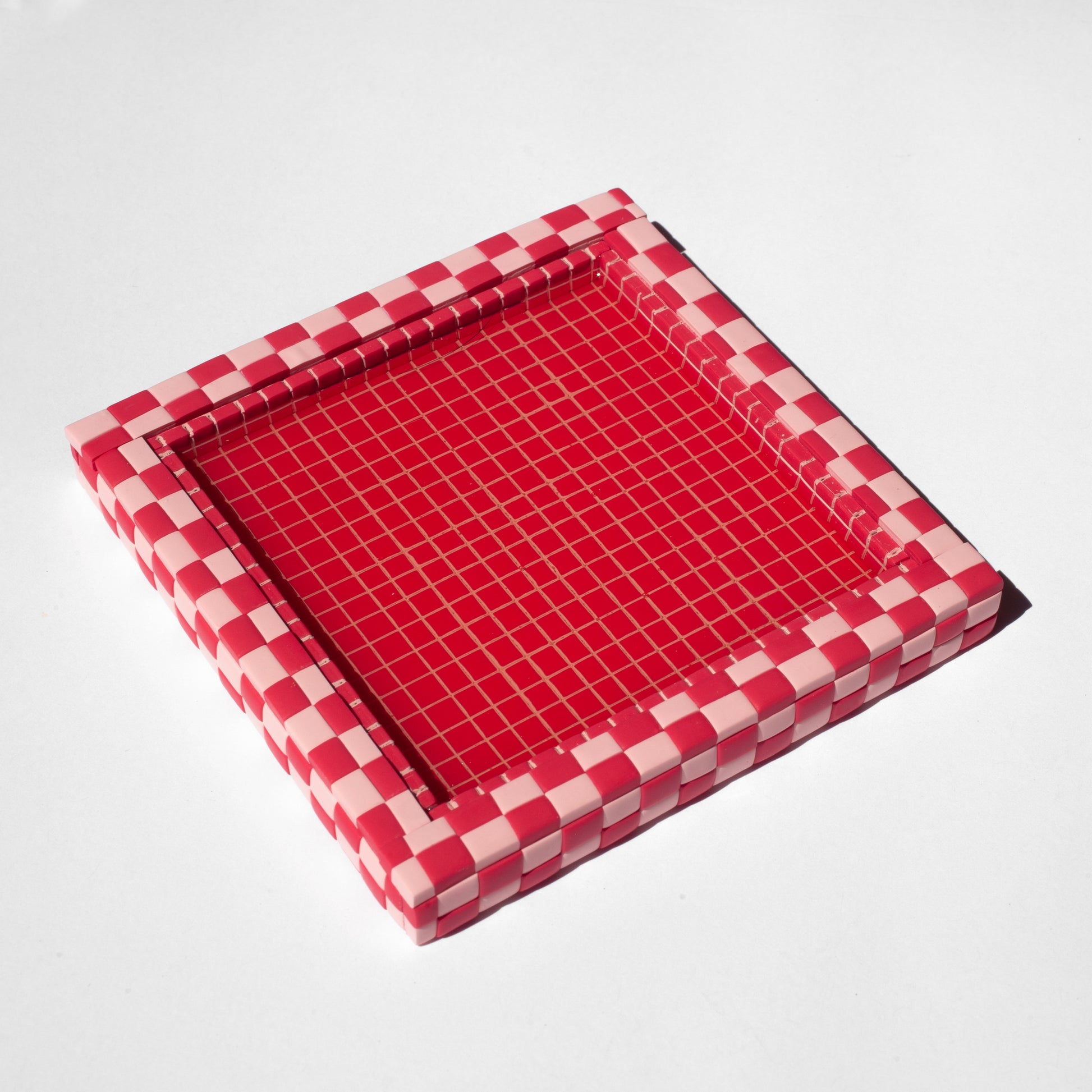 A tiny tiled swimming pool to catch the condensation from your glass.