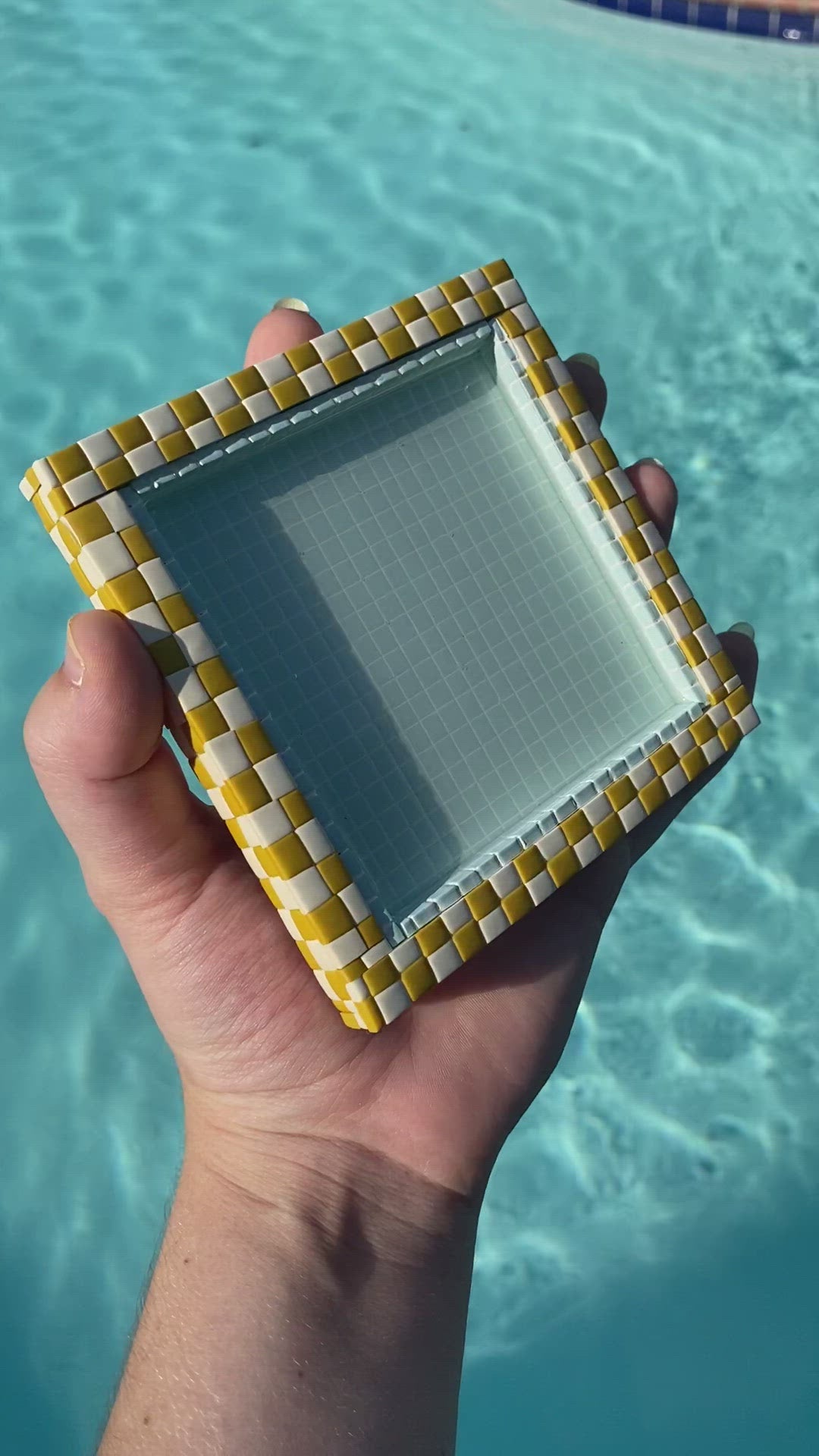A tiny tiled swimming pool to catch the condensation from your glass.